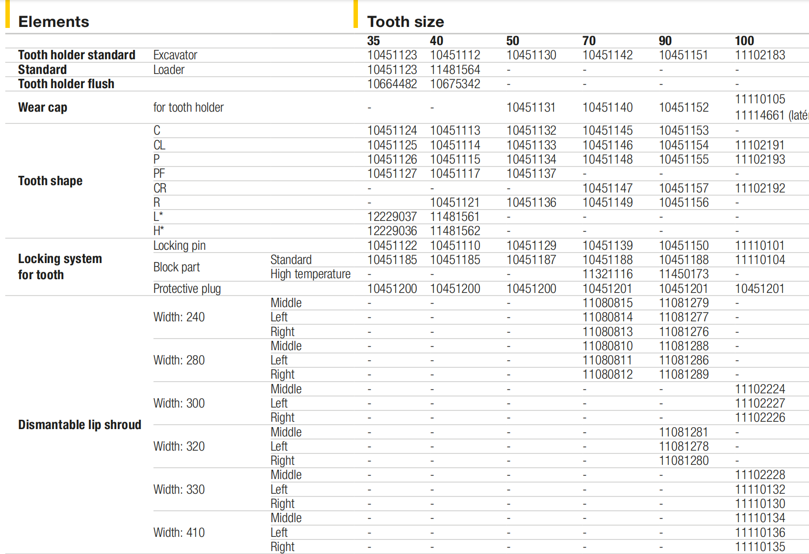 | 210 (EC210) | 240 (EC240) | 290 (EC290) | 360 (EC360) | |